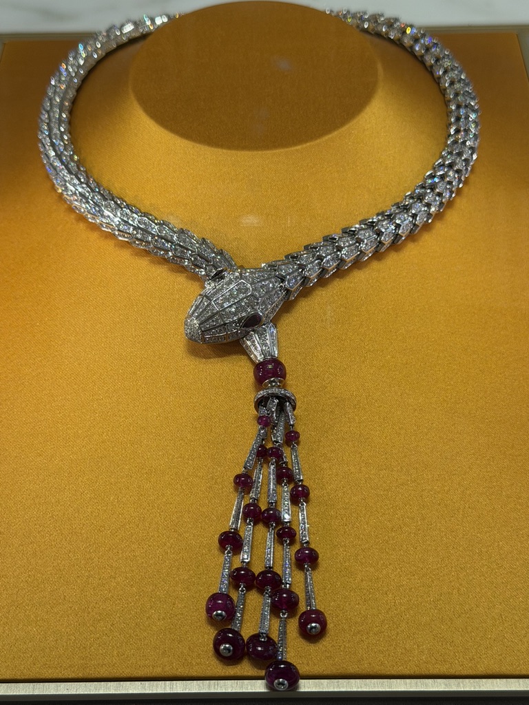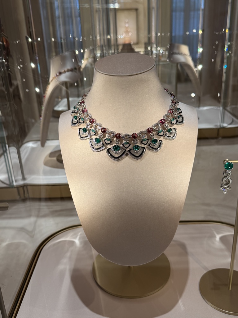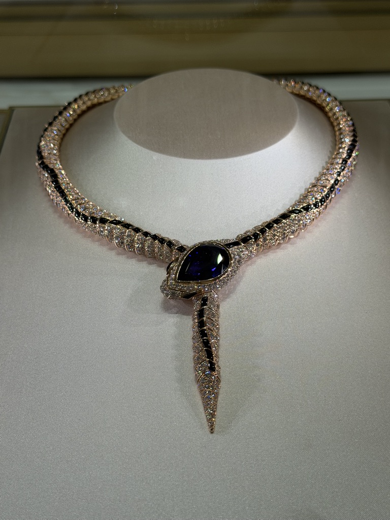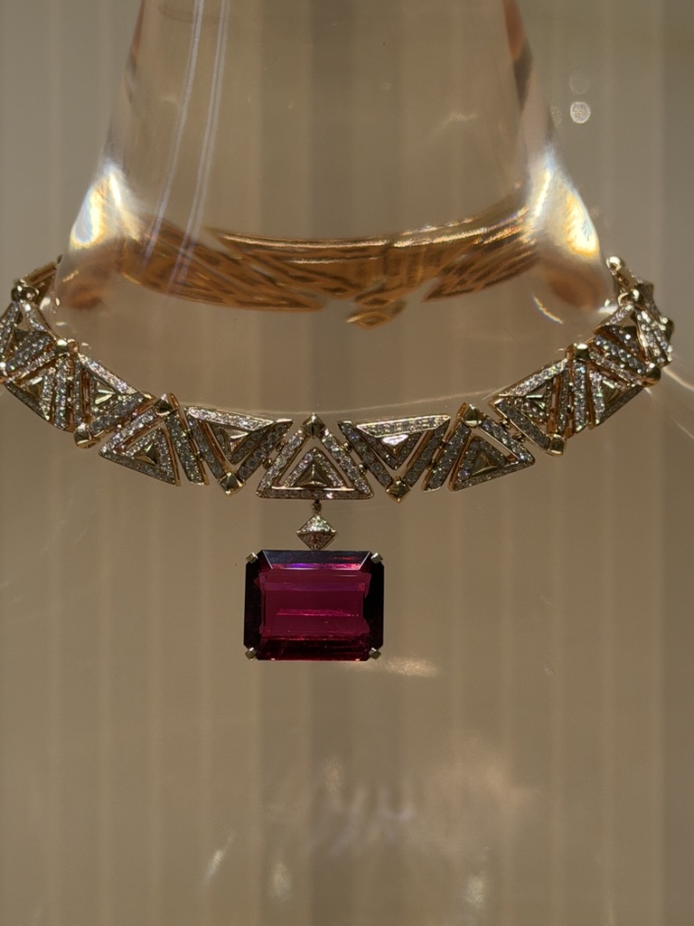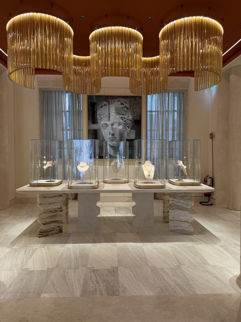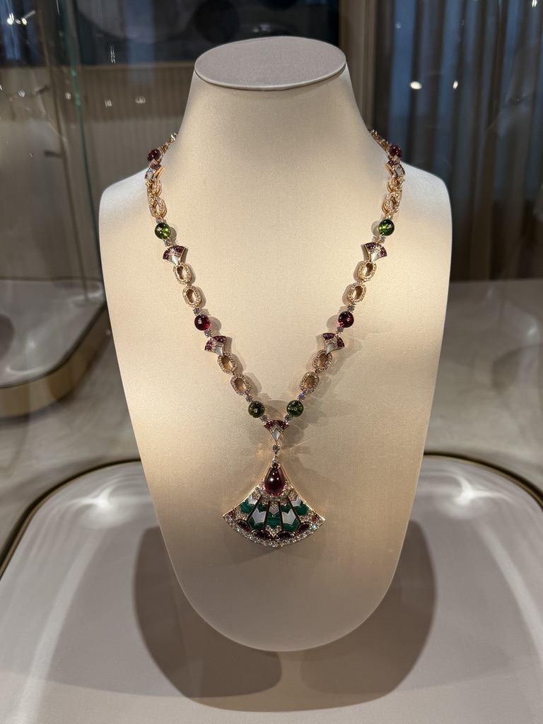Alcuni dei gioielli esposti sono unici o appartengono a linee che non vengono più prodotte. Non rispondono a una logica di ripetizione. Si percepisce nella costruzione, nella scelta delle pietre, nel modo in cui sono risolti i volumi. Sono pezzi che non cercano di adattarsi, ma esistono con una propria identità.