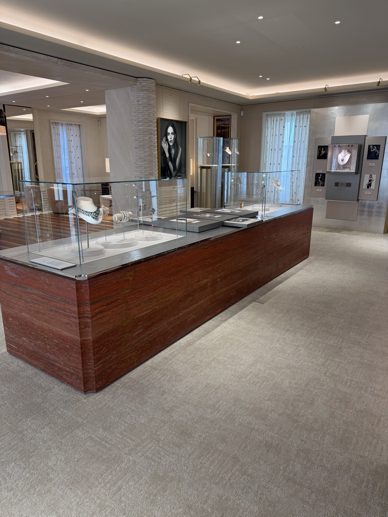 La tienda no compite con la joya. La sostiene con elegancia y silencio sereno. Permitiendo que todo el conjunto tenga coherencia: la mirada, la materia, el espacio.
