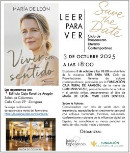 Hoy comparto con ilusión el lanzamiento de un nuevo proyecto que me hace especialmente ilusión: LEER PARA VER; un ciclo de pensamiento literario contemporáneo, impulsado por la Fundación Caja Rural de Aragón, dentro del marco de colaboración establecido para la ideación, diseño, producción y promoción conjunta de iniciativas culturales, educativas, artísticas y sociales.